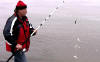 Jeder Auswurf der Angel ergab einen Fang von 2 Stinte. Eine solch reichliche Ausbeute ist nur möglich, wenn direkt im Schwarm gefischt wird. |