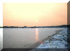 Die Elbe in der Dämmerung. Im Hintergrund die Lauenburger Elbbrücke. |