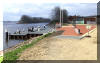 | Blick vom Schleusenkanal und Hafenausfahrt in Richtung Krümmel. Am rechten Elbufer stromaufwärts liegt "Niedermarschacht" mit dem Segelclub Elbmarsch (Tel. 04176 - 8592). | |