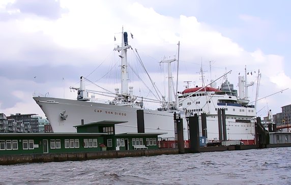 Der ehemalige Stückgutfrachter "Cap San Diego" wurde 1961 bei der Deutschen Werft AG in Hamburg vom Stapel gelassen. Als das Schiff 1986, reichlich runtergekommen, verschrottet und eingeschmolzen werden sollte, rettete der Hamburger Senat im letzten Moment das Schiff und erwarb es, um sie als maritimes Denkmal zu erhalten. Heute liegt das Schiff an der Überseebrücke und ist als Museumsschiff für jedermann zu besichtigen. Alle Informationen über die "Cap San Diego" erhalten sie unter der Homepage www.capsandiego.de . |
