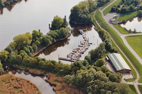 Luftaufnahme vom Hafen der Segler-Vereinigung-Reiherstieg von 1926 e.V. an der Süderelbe (siehe auch Rubrik "Sportbootshäfen"). |