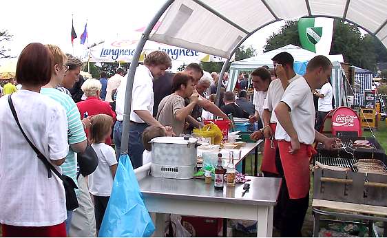 Von der Bratwurst bis zu ausländischen Spezialitäten war der Tisch reichlich gedeckt. Auf dem Foto, der Stand von Sack`s Cafe. Hier gab es Spanferkel, türkischer Salat und Kuchen. |