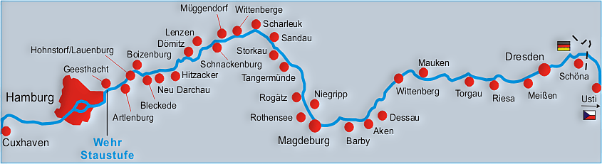 Pegel-Messstationen der Elbe (Auswahl per Mausklick)